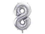 Balon foliowy Cyfra "8", 86cm, srebrny